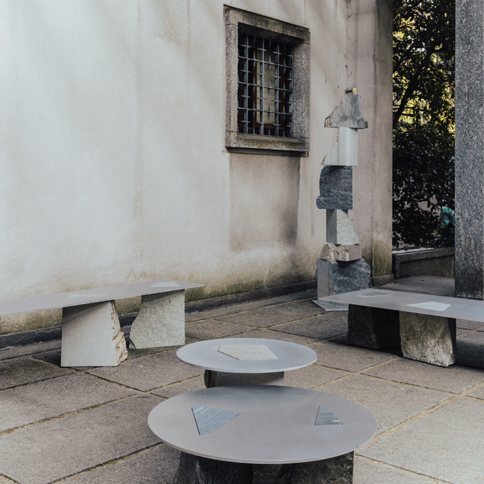 Although based in San Francisco, Estudio Material also draws inspiration from the Italian landscape with their Fragments range. At Milan Design Week, they showed off their unique piece, that is created from remnants of stone yard waste, the furniture range celebrates the raw nature of stone while contrasting it with clinical and precise sheets of metal to form tables and benches.