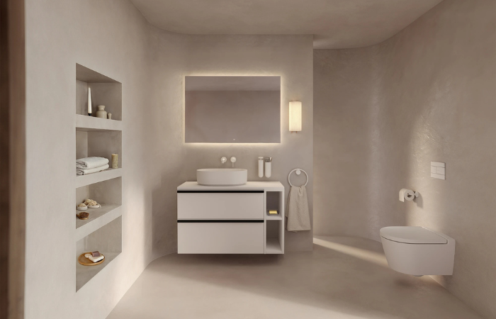 “Our presentation reflects this integrated approach, showing how architecture and design can frame and enhance the experience of the bathroom.”