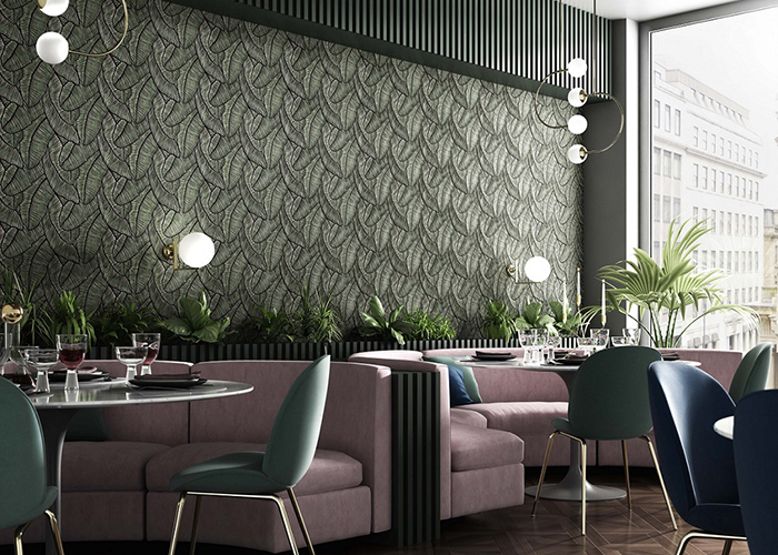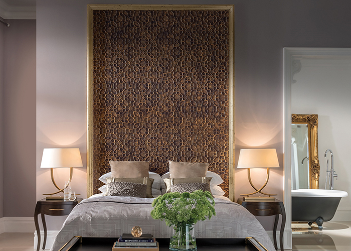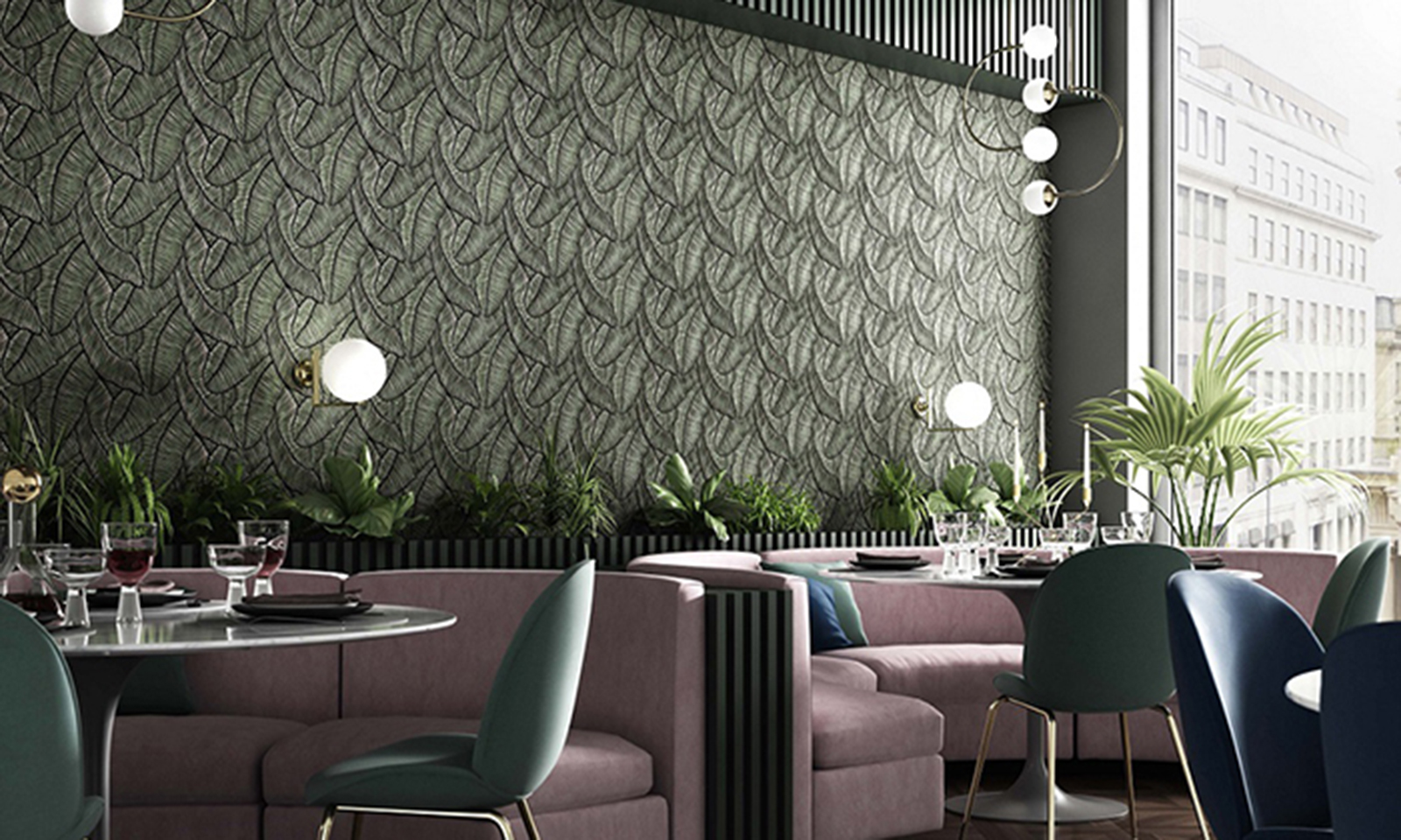 Not only the reserve of walls, Lincrusta can enhance a myriad of surfaces including ceilings, doors, bars and looks fabulous on a curved wall. Its durable nature makes it perfect for hospitality interiors. Our wallcoverings grace the walls of many a splendid commercial interior from hotels, bars and restaurants, to luxury boutiques, nightclubs, swimming pools and spas.