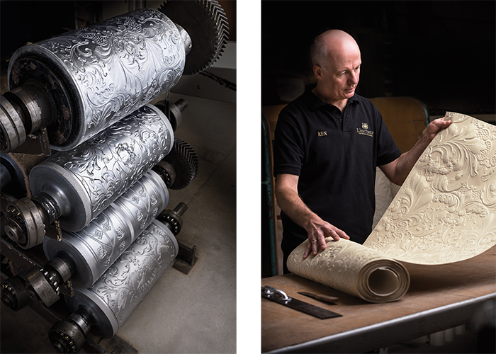 What many people don’t realise is that it is a natural product, made from linseed oil and is still manufactured here in the UK today. The unrivalled depth of these embossed wallcoverings allows them to be decorated using a variety of different paint effects and colour combinations – meaning that each project is truly unique.