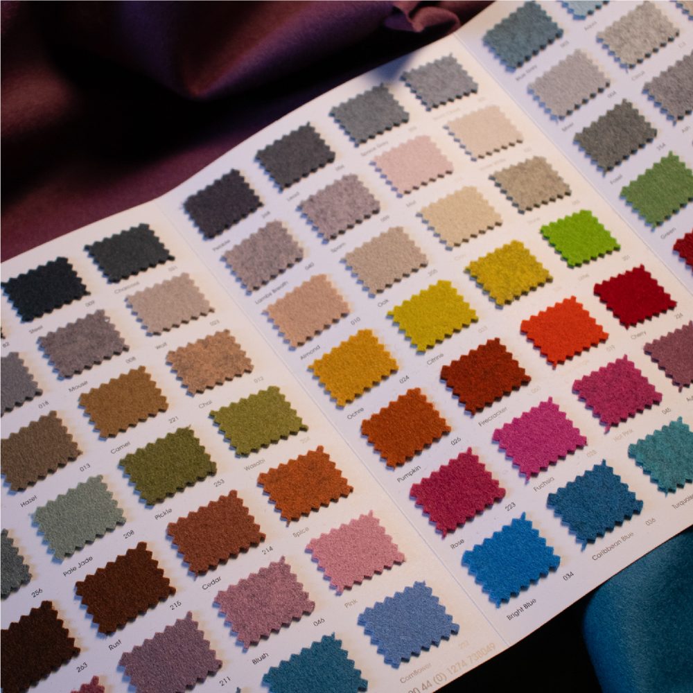 We offer an extensive range of stock-supported fabrics, available for next-day delivery. Additionally, our Yorkshire mills can produce bespoke fabrics tailored to your specifications. Our vertical mill structure ensures flexibility at every stage, allowing customisation in colour, composition, texture, and finish.