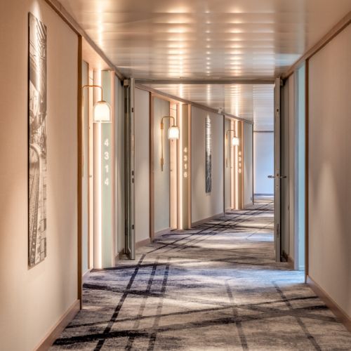At the core of Ulster’s identity is its mastery of Axminster weaving. The company has not only preserved this traditional craft but transformed it through patented weaving technology that removes many of the limitations typically associated with carpet design. This innovation allows for exceptional detail, rich colour saturation, and creative freedom, enabling Ulster’s international Design Teams to craft carpets that act as visual storytelling elements within an interior. Their work turns flooring into a meaningful design layer, one that shapes atmosphere, guides movement, and leaves a lasting impression on guests.