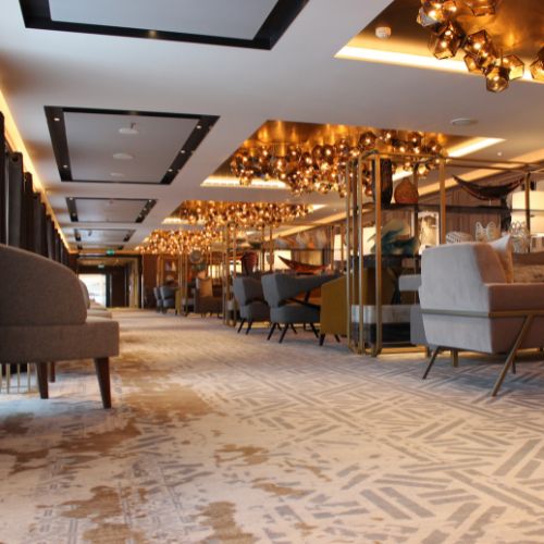 Design at Ulster is rooted in collaboration. The company works closely with interior designers, architects, and specifiers to translate creative concepts into woven reality. Each project begins with a shared vision, and Ulster’s designers develop patterns, palettes, and textures that harmonise with the wider interior scheme. This approach ensures that every carpet is not only visually compelling but also aligned with the architectural intent and materiality of the space.