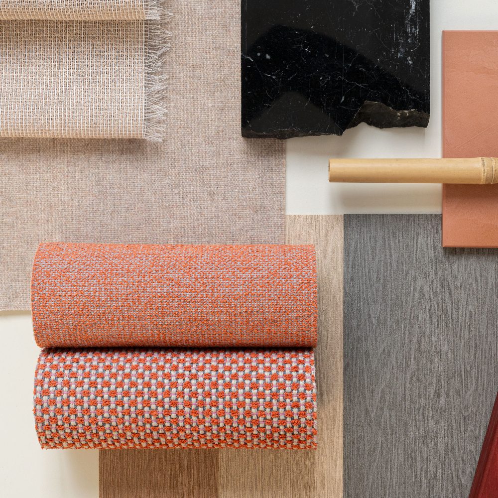 Vescom makes it possible to create a synergic sustainable interior using cross-category materials that incorporate recycled content, from vinyl wallcovering to upholstery to floor-to-ceiling curtains. Even though each product has its own identity, these sustainable solutions are a blend of material-driven DNA, high performance and sustainability. Materials with a common ground for a common good.