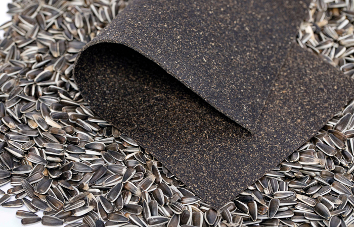 Another waste-based project on display during Isola came from Peruvian designer Katherine Lopez, who focused her attention on an entirely different but still abundant material; sunflower seed husks. A byproduct of the sunflower oil industry, husks are ordinarily discarded, but within the Solio collection, they are transformed into soft, leatherlike material, Solio Soft, or a rigid surface rather appropriately known as Solio Solid.