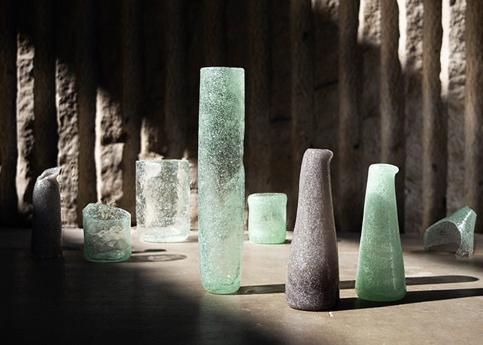 Whilst it may seem safe to assume that glass is one of those materials that is by and large endlessly recyclable and therefore not in need of reform in terms of how it’s made or remade, Studio Peipei’s research and design outcomes points out that there is still room for improvement. For whilst glass is predominantly derived from sand, there are two further key ingredients that come with their modern day issues; Sodium Carbonate and Calcium Carbonate. The former is extracted from salt lakes that are rapidly in decline as a result fo the effects of climate change, whilst Calcium Carbonate, the core component of Limstone, requires the mining of the rock, which is in itself a finite resource. From the Ashes proposes a new way of breaking this supply chain by using one that is potentially infinite in scope. By extracting the ashes from eve- increasingly common wood-fired pizza ovens and combining it with also abundant shell-shells, they have figured out a way of creating a new type of glass. The products are not beautifully crafted to show their natural imperfections, but also easily produced worldwide and made from entirely renewable materials derived from by-products of the food industry.