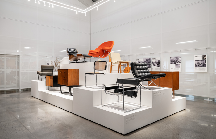 The inaugural exhibition ‘Manufacturing Modern’ examines the shared histories of Knoll and Herman Miller, and features a selection of the iconic designs created by the visionaries who shaped the companies – Florence Knoll, George Nelson, Eero Saarinen, Charles and Ray Eames, Harry Bertoia, Ludwig Mies van der Rohe, Marcel Breuer. Through these objects and corresponding didactics, the exhibition communicates a history of the beginnings of Modernism, the early 20th century movement whose guiding principles drove both Herman Miller and Knoll to produce designs that would prove fundamental to the history of modern design.