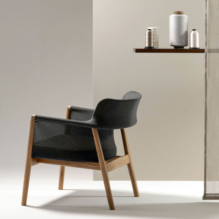 Sustainability was at the forefront of the collection’s design process. Made from renewable and recyclable materials, the separate elements of the chair are designed for easy disassembly for repair or recycling. Along with using 100% post-consumer recycled polyester made from recycled PET plastic bottles, the textile componentry of the chair is knit to fit, resulting in zero waste in manufacture and furniture assembly.