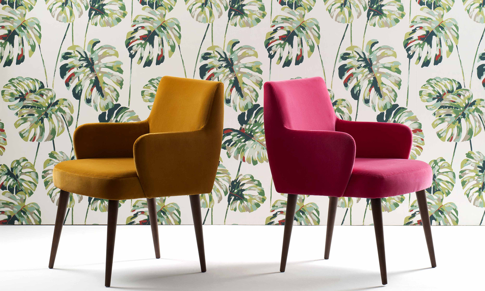 A family of Chevy dining and meeting chairs brings the seventies into the 21st century with rich gemstone colours. While the collection itself owes its inspiration to the styling and elegance of an earlier era, its timeless silhouette can adapt to any aesthetic sensibility and contract environment. Turned timber legs and a fully wrapped seat detail combine to create a picture of comfort and simplicity.