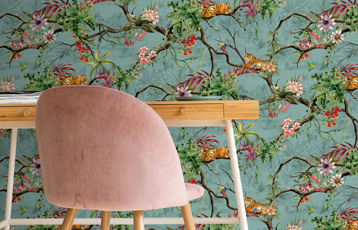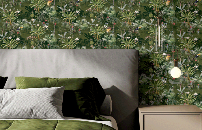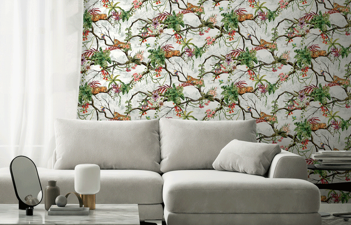 Panthera makes a striking statement with its vivid depiction of majestic leopards resting amid dense foliage. The intricate detailing and vibrant greens create a dynamic visual impact, making it an ideal choice for adding energy and character to both residential and commercial interiors.