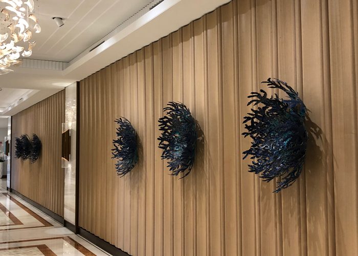 The Atlantis is a remarkable hotel in Dubai. More than a welcoming atmosphere, the hotel prides itself to offer its visitors an immersive and sensitive experience. Echoing the decoration of the palace, the artworks are imbued with the richness and atypical visual universe of Dubai’s seabed.