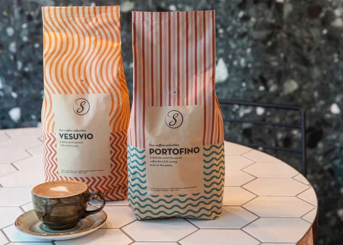 The coffee packaging was designed to reflect the two locations it is named after – Vesuvio and Portofino; while the beautiful Negroni bottle features labels printed with copper foil to give them a premium and exclusive feel.