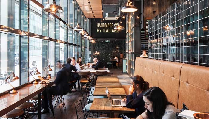 The new site has been designed as a faithful representation of the original model, while adding to the experience by introducing a new bar to service the Canary Wharf’s evening trade and providing a suitable setting for Scarpetta’s authentic branded products.