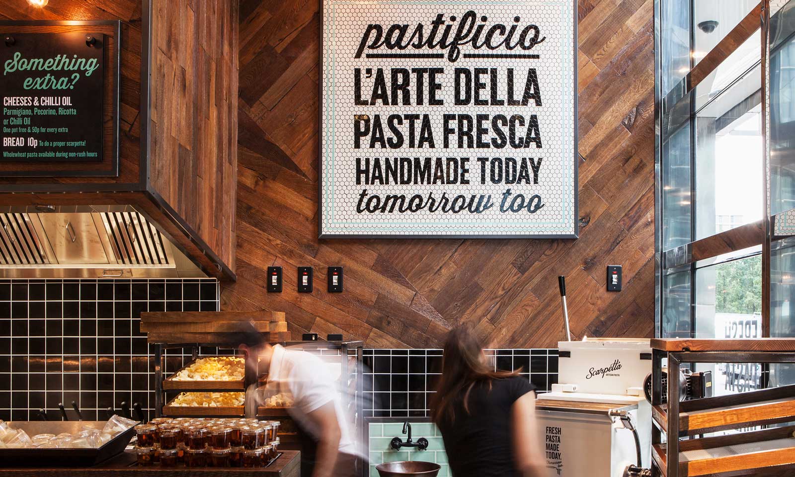 Embodying the true essence of Italy and all that’s great about the Italian culture, cuisine and lifestyle, Scarpetta’s aim is to be an Italian fast-casual concept that guarantees genuine quality, authenticity and a real Italian experience. It exists to integrate genuine Italian cuisine with the fast-paced London city life, serving genuine, fresh pasta dishes, handmade daily, to hungry city workers.