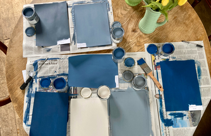 For wall colours they have to be painted on sheets with two coats to see the actual colour, not just chosen from shade cards.