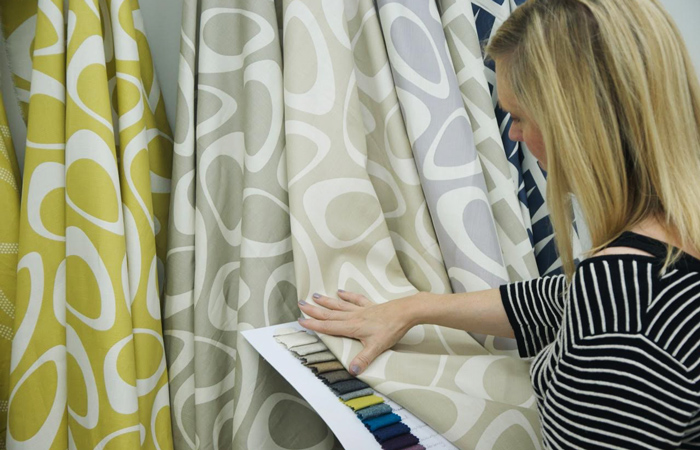 Could you explain the importance of sampling and testing colours, fabrics, and textures in the actual space, and how lighting affects colour perception, given your extensive knowledge of the qualities of fabric?