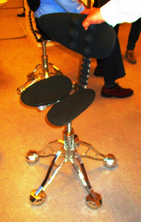 One unusual product was the FreedMan chair from UK osteopath, Simon Freedman based on his own knowledge of anatomy. Made principally from die cast aluminium, this small and surprisingly comfortable, chair forces the user to adopt a correct posture.
