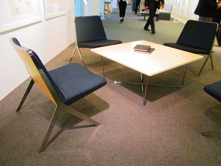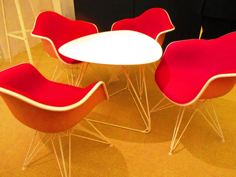 Herman Miller’s showroom was colourful and welcoming with products that were generally more evolutionary than revolutionary. Their new Eames-esque tables, with imaginative top shapes, and chairs, were attractive.