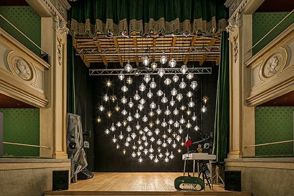 The designers Jan Plecháč and Henry Wielgus sketched the shape of these chandeliers by rotating the silhouette of beautiful theatres around the world on their own axis.