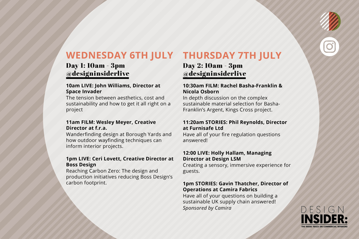 Design Insider is holding a full programme, across two days, utilising Instagram which will showcase both the hospitality and workplace sectors. Our programme will include pre-recorded project focused interviews, Instagram Live conversations, production focused Q&A sessions, and new product launches. This event is sponsored by Hypnos.