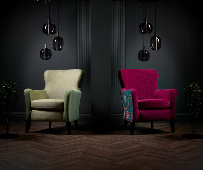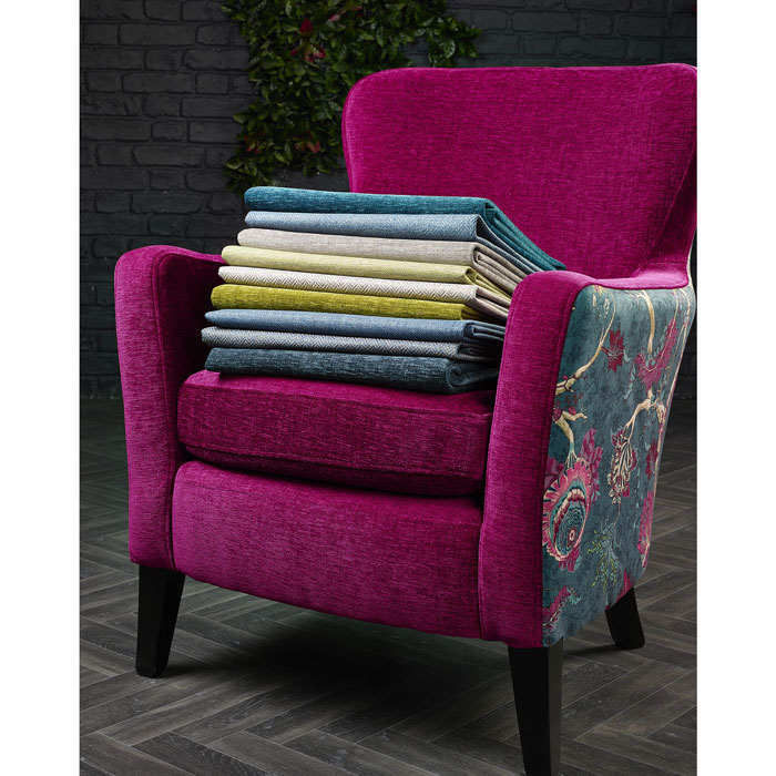 Images show Marmotte Magenta and Slalom Olive/ Orelle Elm, provided by Barons Furniture.
