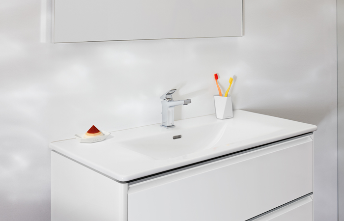 To achieve the carefully sculpted new home collection, Laufen’s patented SaphirKeramik was a clear choice. This revolutionary, ceramic material achieves its exceptional hardness through blending with corundum, a colourless mineral, which is a component of sapphires. This gives SaphirKeramik a flexural strength equal to that of steel, yet it has the potential to be wafer-thin, giving designers almost infinite freedom to experiment.