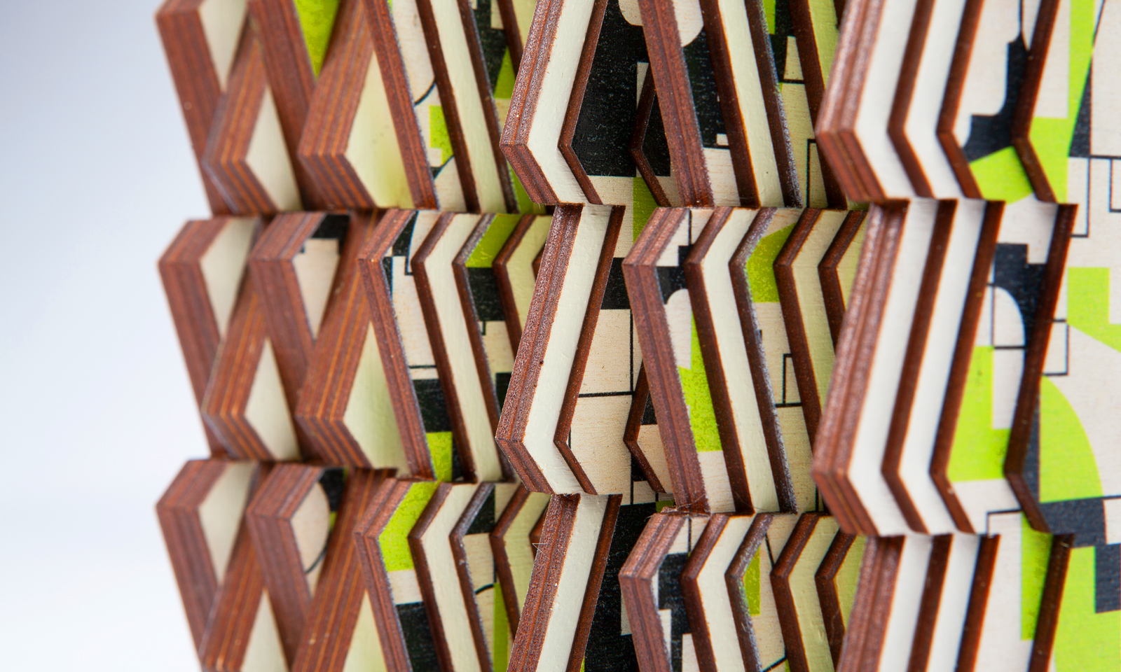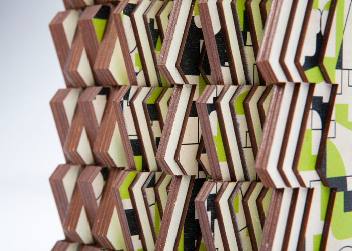 Emily Hatton’s work consists of a collection of three dimensional tiles that are made using a combination of techniques including laser-cutting and hand construction with elements of laser etch and digital print that incorporate subtle pattern into the designs. Some of the tiles have then been further developed by mould making and casting with an eco-resin (Jesmonite) and waste materials. Each waste material is able to offer a unique surface texture to the resin. The three dimensional tiles can be applied to a range of applications including luxury wall panelling, unque wall art and adornments for furniture design.