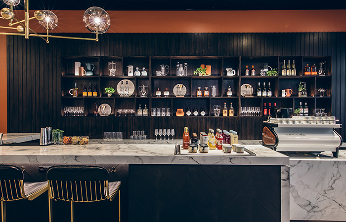 Coffee Bar / Bar: A reimagined hotel cafe experience. Coffee bar during the day, transitioning seamlessly into the perfect spot for a spontaneous encounter over cocktails in the evening. A focal point for guests, this bar serves you the best cup of coffee and pastries in the AM, the best craft beer and cheese plate in the evening, and premium, workable grab & go food throughout the day. There are 3 service journeys: bar stool service, grab & stay service at the counter, and table service.