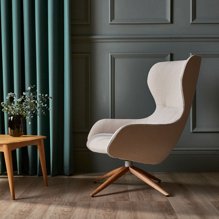 A fabric inspired, designed, and made in the company’s home of Yorkshire, England, Yoredale takes its name from the ancient title of Wensleydale, a picturesque dale in the county. Woven from British wool, the fabric contains an innovative black binder yarn which highlights the texture of the bouclé and creates an appealing visual detail.