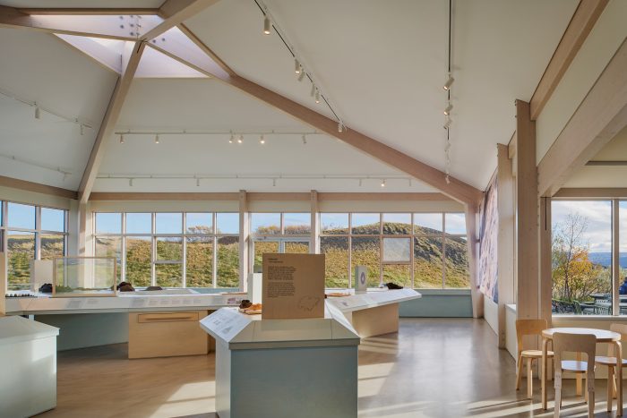 ‘A key design decision was not to compete with the stunning panoramic views the centre offers over Lake Mývatn, the pseudo craters and the mountains but to harmonise with them’, Pippa Nissen, Director of Nissen Richards Studio commented.