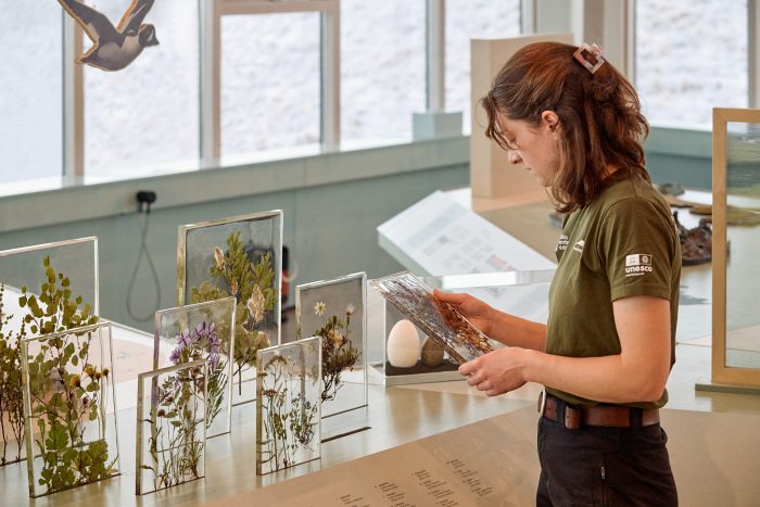 Each theme of the exhibition includes stories relating to both geology and biology, as well as the coexistence of man and nature. Stories relating to research and nature conservation also run as threads throughout. Visitors are able to weave in and out of the landscape and view the same models, specimens or drawings from different perspectives. Additional content specifically relates to the perspective from which the visitor is looking – whether research, conservation or community for example – and enriches the experience.