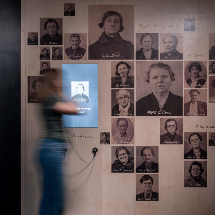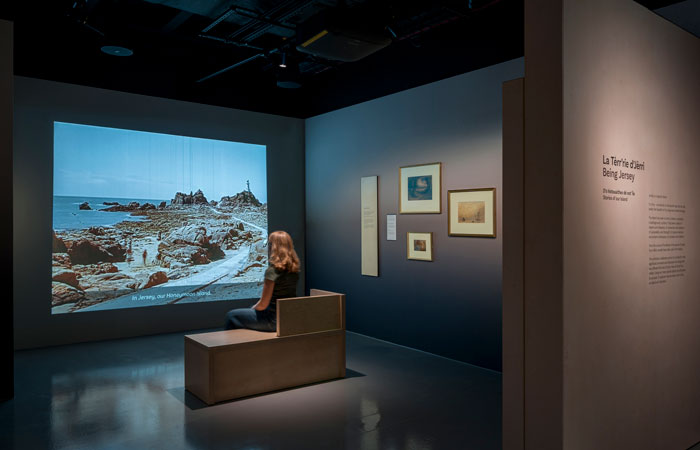 The sound is integrated into the custom-designed benches in this section, where individual pick-up narrations are given by voice actors, demonstrating the Jersey accent and Jèrriais.