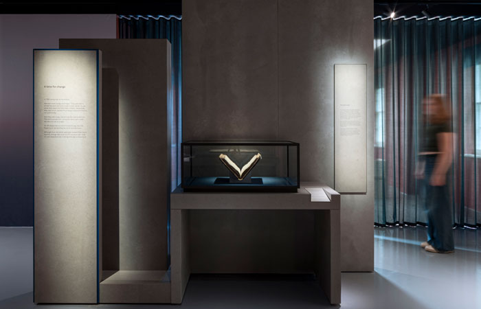 Nissen Richards Studio also undertook the exhibition’s graphic design, creating the information hierarchy and panels and labels according to the chosen colour for each section of the exhibition, giving information ranging from introduction and theme to sub-sections, highlight exhibits and secondary messages and detail.