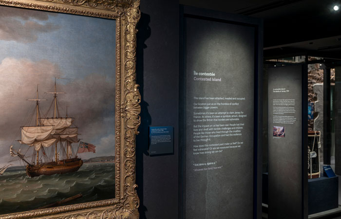The 485 sq m exhibition is a major move for the Museum – and for its client, Jersey Heritage – and involved the complete transformation of the previous permanent exhibition, with the clear directive to undertake a totally new approach. The exhibition title is given in English and Jèrriais, the traditional language of the Jersey people. The use of this historic, Norman Romance language is in decline, but the Museum is one of the institutions actively seeking to preserve the language through its role as keeper and protector of the island’s heritage.