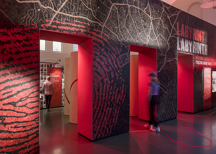 Nissen Richards Studio has completed the design of an immersive labyrinthine exhibition at The National Library of Norway in Oslo, focusing on fictional character Harry Hole – ‘Oslo’s number one detective’ – created by multi-million-selling Norwegian author Jo Nesbø in his hugely-popular crime series. The exhibition, entitled ‘Labyrinth: Tracing Harry Hole’, is located in the Library’s 195 sq m first floor temporary exhibition space.