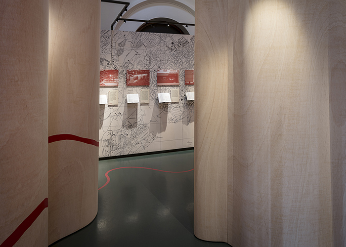 This is the third exhibition Nissen Richards Studio has completed for The National Library of Norway, with previous projects including a temporary exhibition on the craft of bookmaking in the same gallery and a permanent exhibition called Opplyst, located on the Library’s ground floor, featuring 30 objects embodying and illuminating key moments of Norwegian history. This striking exhibition went on to win a Gold Award in the International Institutional Interior Design category of the London Design Awards 2020.