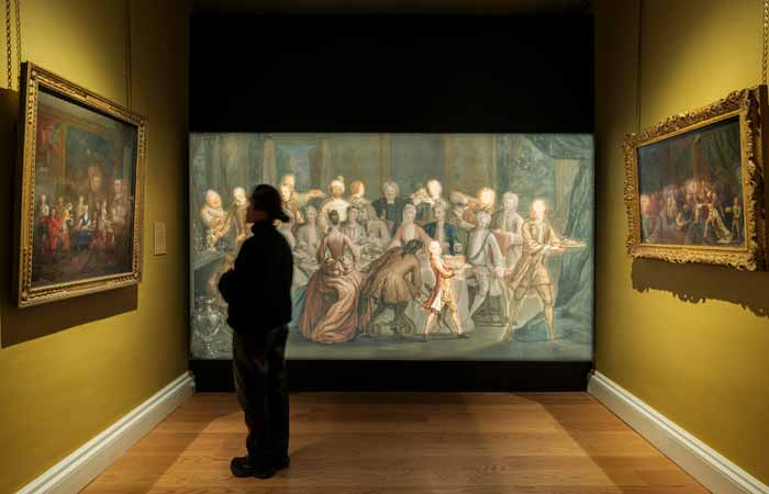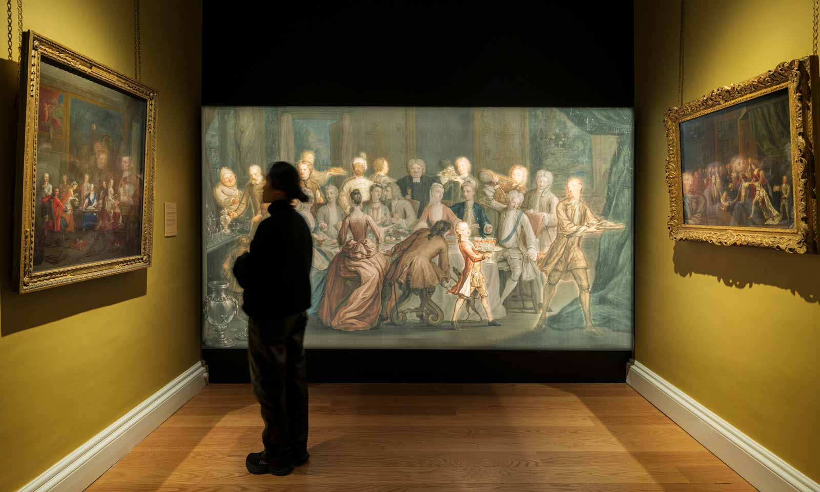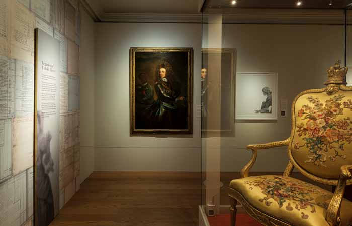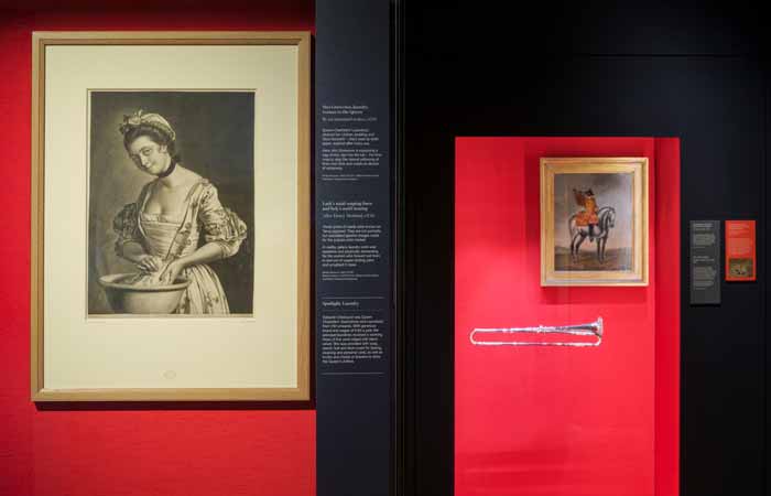 Visitors are also welcomed through by a portrait of Theodore Randue, the Housekeeper of Windsor Castle, as he ‘unlocks’ the door for them to enter the exhibition. The visitor then passes through a series of room-sets, each with a dedicated theme. These start with ‘Origins and Identities’, moving on to ‘Skills and Expertise’ and ‘Status’, looking at how status was communicated – eg through the livery of the guards. A fourth room-set houses a large reproduction of an historical painting depicting a tea party, with a new lighting treatment that draws the viewers’ attention away from the guests to the staff serving in the background.