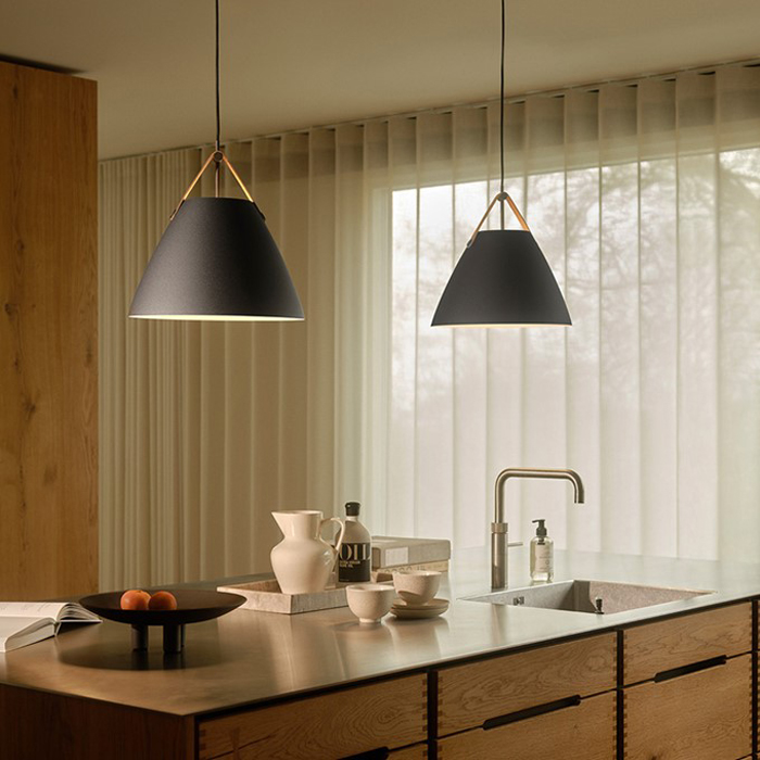 Strap was created by Danish design duo Bjørn + Balle and combines classic materials in a modern way – with a soft leather strap contrasting the clean metal or glass shade. The design reflects Scandinavian minimalism while adding a warm, personal touch.