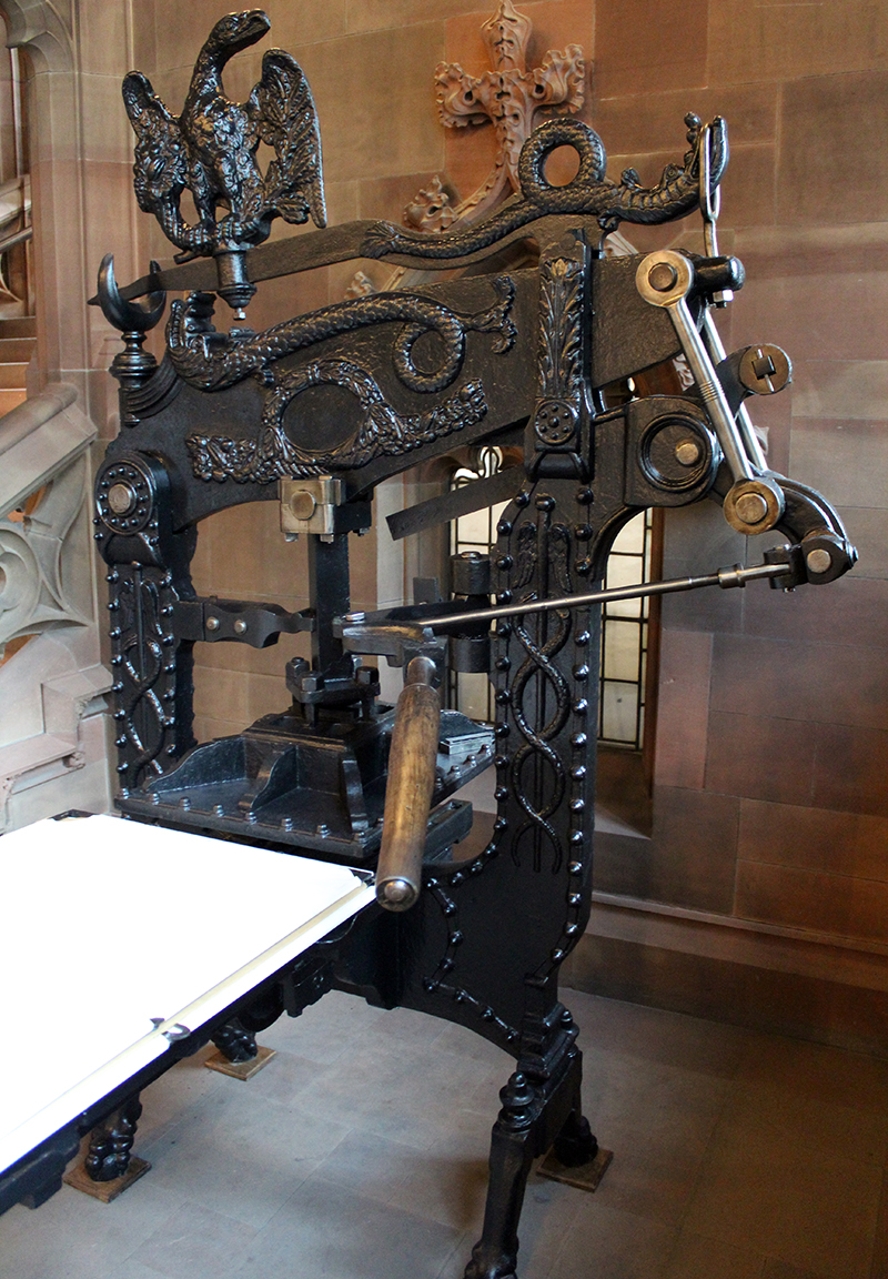 The original Entrance Hall, has extremely high pillars and vaulting, and is quite beautiful. It has a wonderful example of an 1820’s iron printing press with intricate detailing.