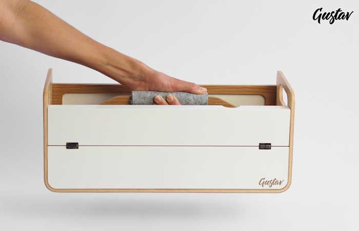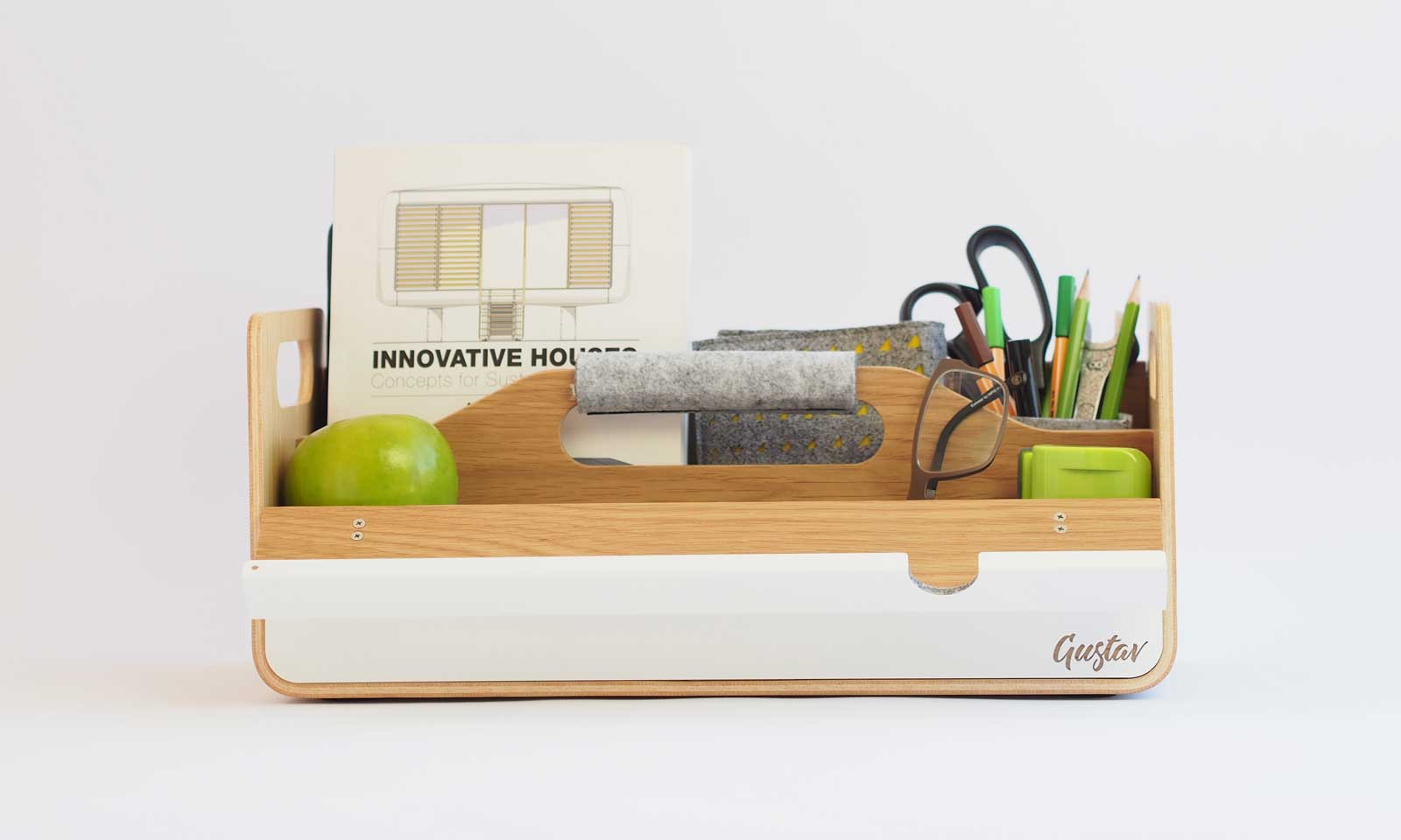 The first ergonomic and portable solution of its kind, Gustav allows users to carry their workspace with them wherever they go – whether you are working from home or in an office. Light, beautifully-designed and with capacity to hold all the work essentials anyone needs, it also doubles as a laptop stand.