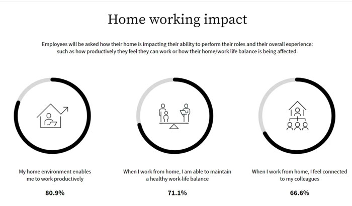 The initial data featured the input from an astonishing 51,000 responses, of which 92% were employees working from home, based in 61 countries (the current response rate to the survey sits at well over 100,000). Employees were asked how their home is affecting their ability to perform their roles, as well as their overall experience. Health, happiness, productivity and workplace identity were key issues explored.