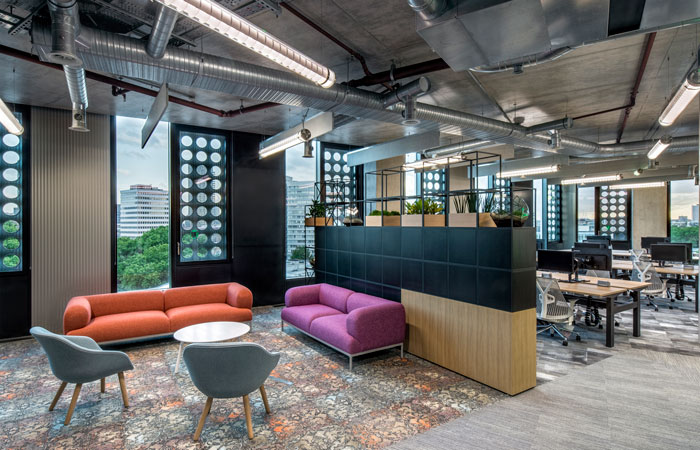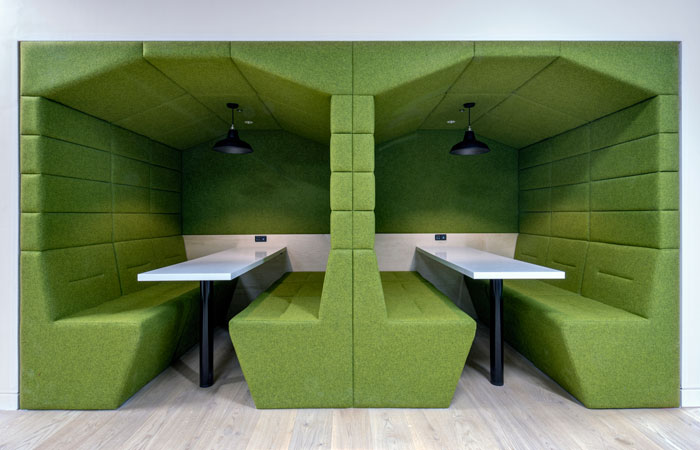 Whilst in the past a typical office may have meant a space filled with rows of desks, blank walls and a drab canteen, many organisations have acted upon these studies, creating interiors curated for people – breakout rooms, zonal spacing, acoustic privacy are much more than buzzwords, they are integral to employee productivity, happiness and wellbeing. As one of the UK’s leading office textile manufacturers, we’ve worked with interior designers and architects across the globe in creating workplaces that do exactly this – spaces that stimulate, excite and inspire employees.