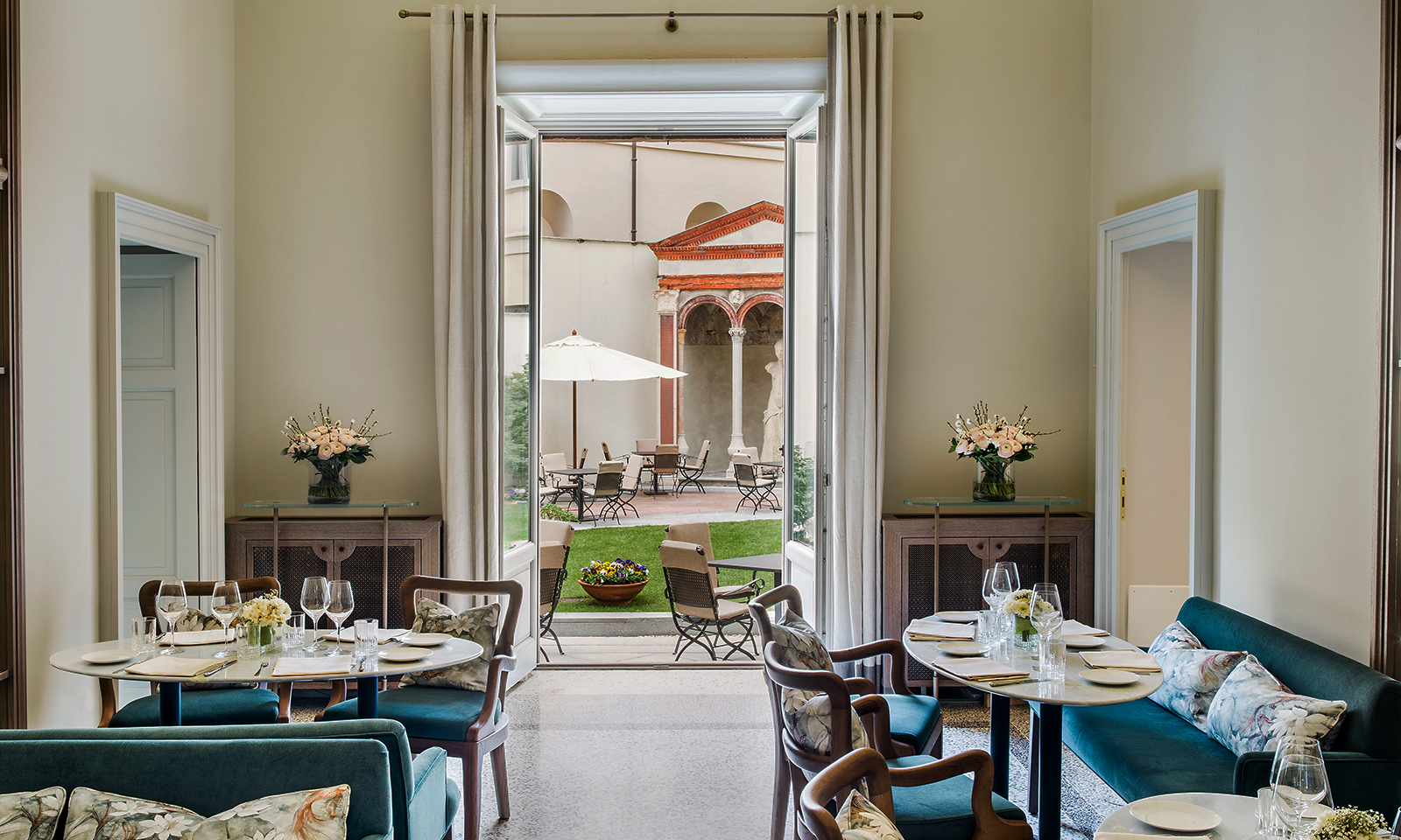 Paper Moon Giardino is housed within a 200-year old mansion in Palazzo Reina that has recently been restored to its former glory – the original features and neoclassical façade have been preserved to honour the architectural value of its surroundings.