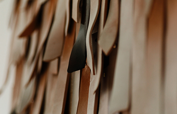 The material itself inspires Ania, as she works with terracotta creating individual components slip sprayed and fired only once to bisque temperature. She installs them as a part of wall installation.