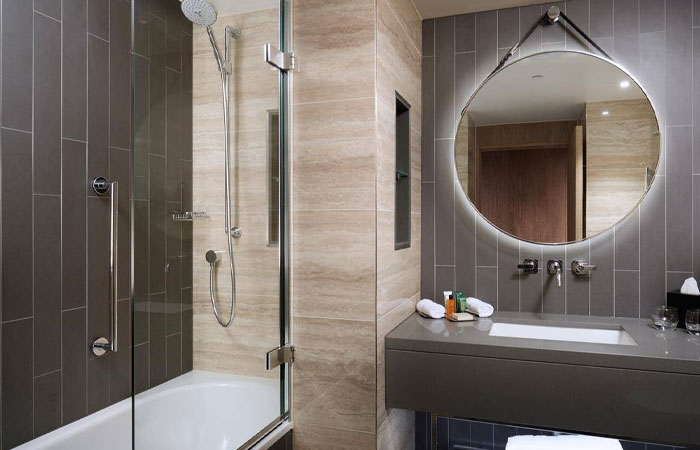All internal finishes, metalwork, stone, tiling & joinery decorations were completed by EE Smith Contracts. The team worked in numerous areas across the hotel, including the bars, restaurants, ballroom & reception areas. EE Smiths were faced with an unusual challenge when faced with the ballroom panelling & all-day dining areas, with units designed with sliding screens made of steel mesh & no rolling mechanism. Boasting an indoor pool, a restaurant, a fitness centre and a cocktail bar, the Hilton London Bankside is conveniently situated on London’s popular South Bank. It also has 292 rooms including executive rooms, suites, a luxury penthouse & Interconnecting family rooms, ensuring there is something for everyone! The Hilton Bankside is home to the renowned OXBO Bankside restaurant which showcases the area’s historic influences. With its vibrant atmosphere, this is the perfect place for a hearty breakfast, nutritious light bite, or unforgettable lunch or dinner.