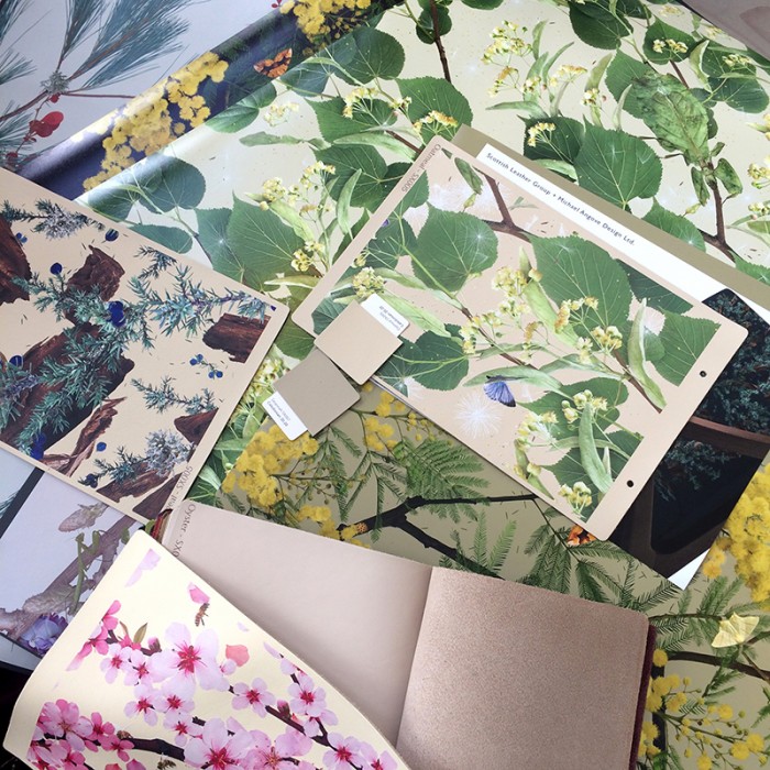 Muirhead began the challenging task of finding a designer who could offer an emphasis on extremely detailed designs that would showcase the capabilities of their printer. This led Muirhead to Michael Angove who is a specialist in surface pattern, with a particular emphasis on complex botanical chinoiserie. Michael’s attention to detail, hidden imagery and clever use of shadow makes his pattern, designs and products both beautiful and entertaining. As predicted, these designs worked amazingly well on the Muirhead leather surfaces.