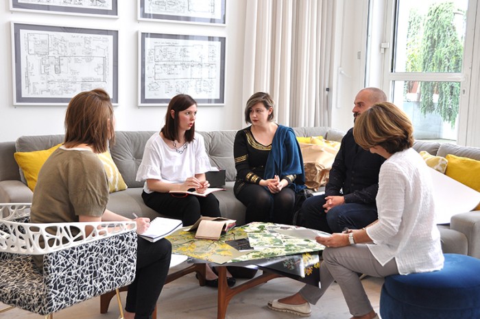 Mimosa is a warm, Mediterranean plant with intricate fern-like leaves and clouds of tiny, yellow pompom flowers. Lime Tree has heart-shaped leaves and an unusual blossom, whilst the overall shape of the tree is that of a chandelier. Both designs have hidden insect and animal life within them, making the patterns interactive and bursting with life. This not only gives the pattern longevity but also connects the inside to the outside. The patterns were created by taking hundreds of scans and photographs from real plants. These were then meticulously cut out and digitally assembled into complex, repeating patterns.