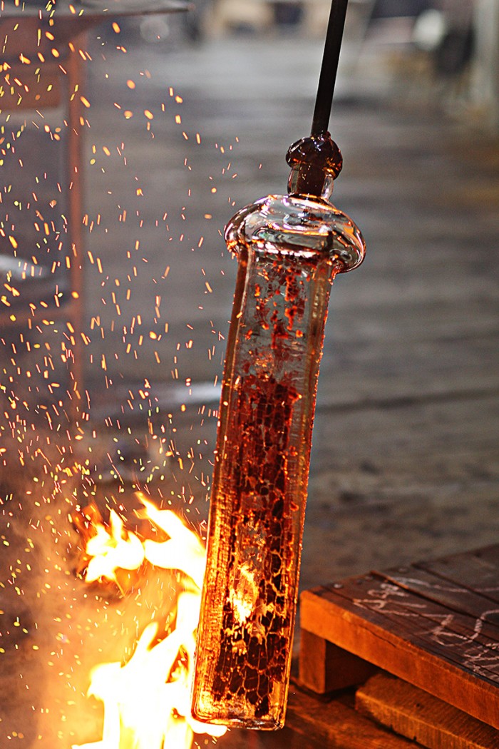 Kuma worked with Lasvit to create a product that drew its inspiration from a technique for preserving construction timber by charring its surface, known in Japan as Shou-Sugi-Ban or Yakisugi. This ancient technique uses charring wood as means to preserve it without the need of painting or sealing, an aspect leading to the current revival of this technique in eco-friendly architecture. Adapting this process to the centuries-old glass craft technique enabled a contemporary design that is unique for every single piece of hand-blown glass.