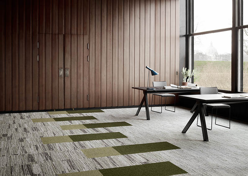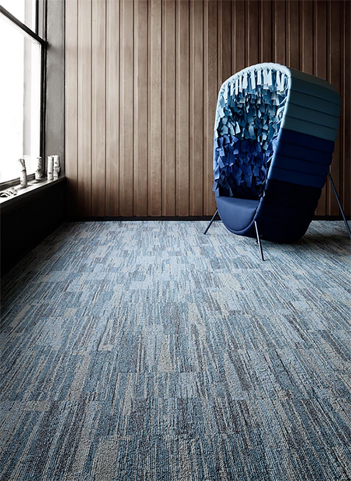 Legend is a truly green choice as the tile backing is produced from used water bottles that are recycled into our patented and long lasting Ecotrust felt backing with great acoustic performance. The backing is Cradle to CradleTM certified as well. The ECONYL® yarns are produced from used fishing nets that are reborn as strong and hardwearing yarn for textile flooring.