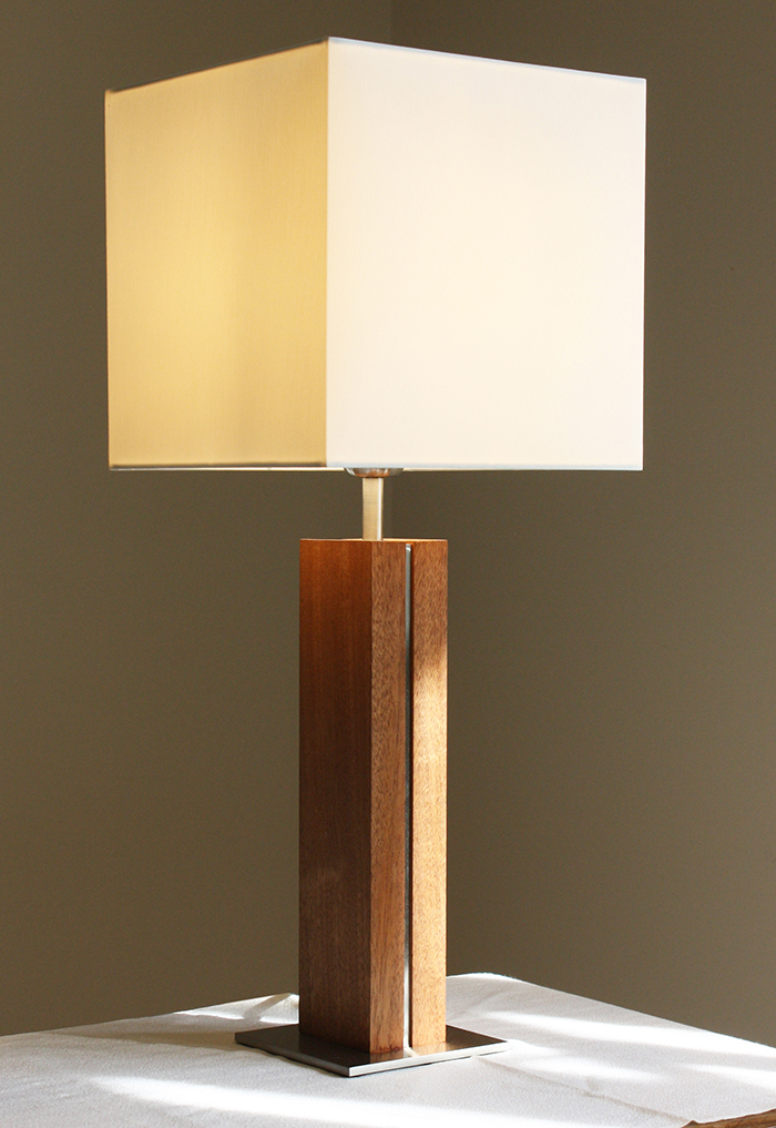With its simple, compact form it is ideally suited as a bedside light. Panino can be specified either in dark or light hardwood. The vertical strip of metal comes in a variety of finishes: chrome, satin nickel or antique brass. Chad also offers a range of shade colours and fabrics.